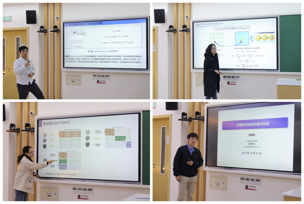 During the specialized report session, four faculty members delivered cutting-edge and engaging presentations. From the Department of Physics, Dr. Wu Honglu presented on “Electrochemical Energy Storage in Functionalized Materials,” followed by Dr. Liu Min’s talk on “d-electron Heavy Fermion Materials.” From the Department of Mathematics, Dr. Li Yanfang introduced “Algorithm Development for Biological Transcriptome Data,” and Dr. Sun Jiake discussed “Control and Disturbance Rejection in Fractional-order Systems.” The reports covered a range of active research topics in mathematics and physics, showcasing the presenters’ solid expertise and innovative exploration。