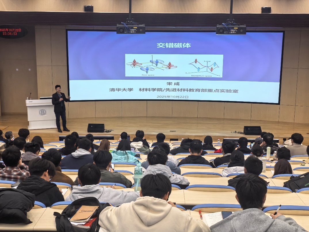 On October 22, the College of Mathematics and Physics successfully held the sixth session of the "Xishu·Wuli" high-level academic lecture series at the Lixue Lecture Hall on the Changping Campus. The event featured Professor Song Cheng from the School of Materials Science and Engineering at Tsinghua University, who delivered an academic report on "altermagnets." The lecture attracted over 260 participants, including undergraduate students, graduate students, and faculty members from the Changping Campus. The session was presided over by Professor Wang Wei, Dean of the College of Mathematics and Physics.