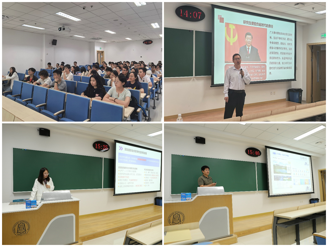 On September 11, the school organized special entrance education sessions. Secretary Wang Lijun delivered an ideological education report titled "Embrace the Mission of Strengthening the Nation: Being a Graduate Student in the New Era," encouraging students to align personal growth with national development strategies. He also introduced the school's history, research teams, and training systems. Subsequently, Graduate Secretary Liang Hongzhen and Counselor Li Chao explained key policies covering academic cultivation, degree requirements, research norms, safety management, and daily affairs, helping students fully understand the requirements of graduate study.